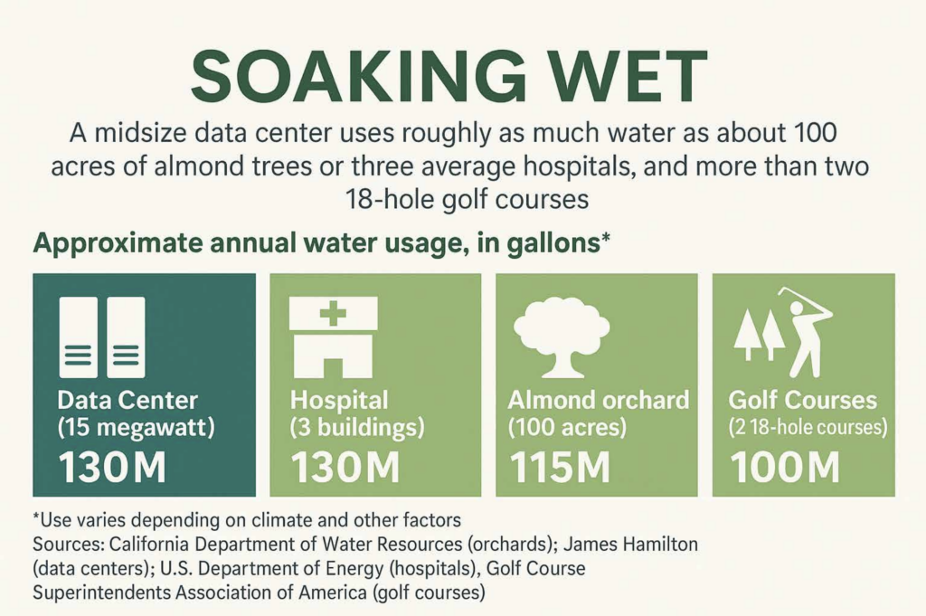 - Large data centers can consume over 5 million gallons of water per day. (1)