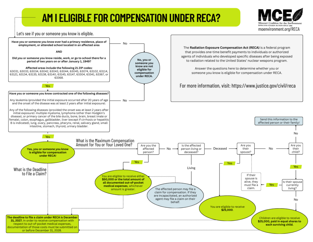 This webpage provides information on the federal Radiation Exposure Compensation Act (RECA), which Congress expanded in July 2025 to include claims related to Manhattan Project waste in Missouri.